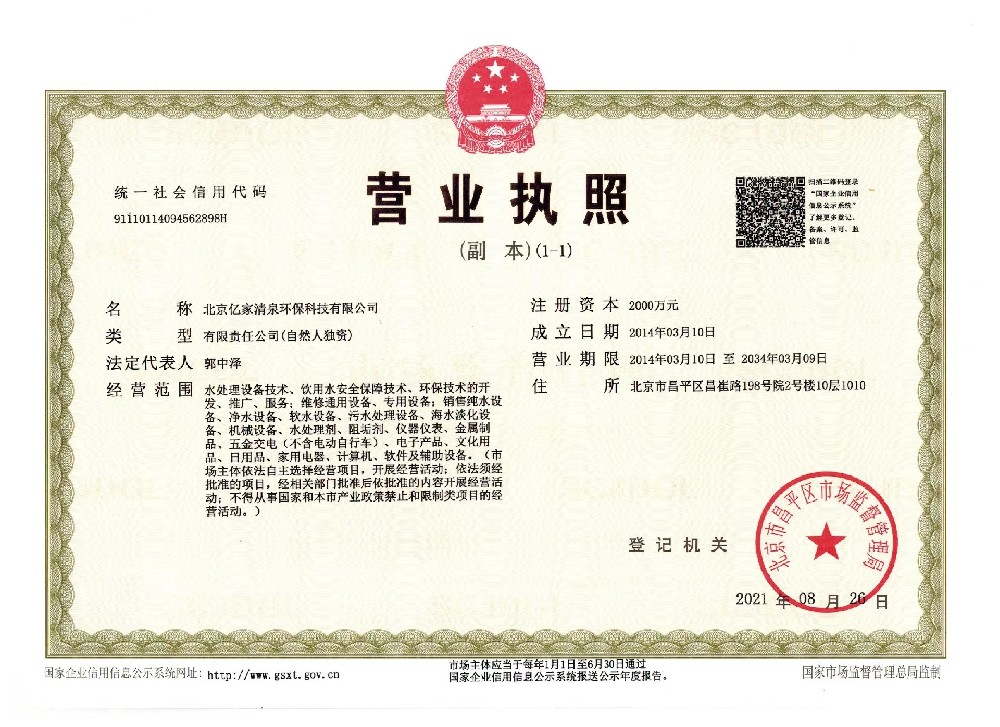 北(bei)京億家清泉環保(bao)科技有限公司(si)